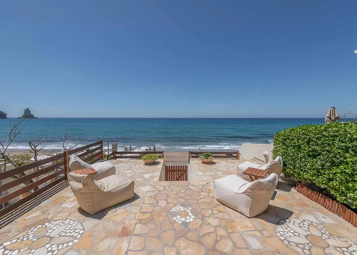 Vila pe malul mării se află la 10 minute cu mașina de Achilleion și destul de aproape de Paralia Agios Gordios.